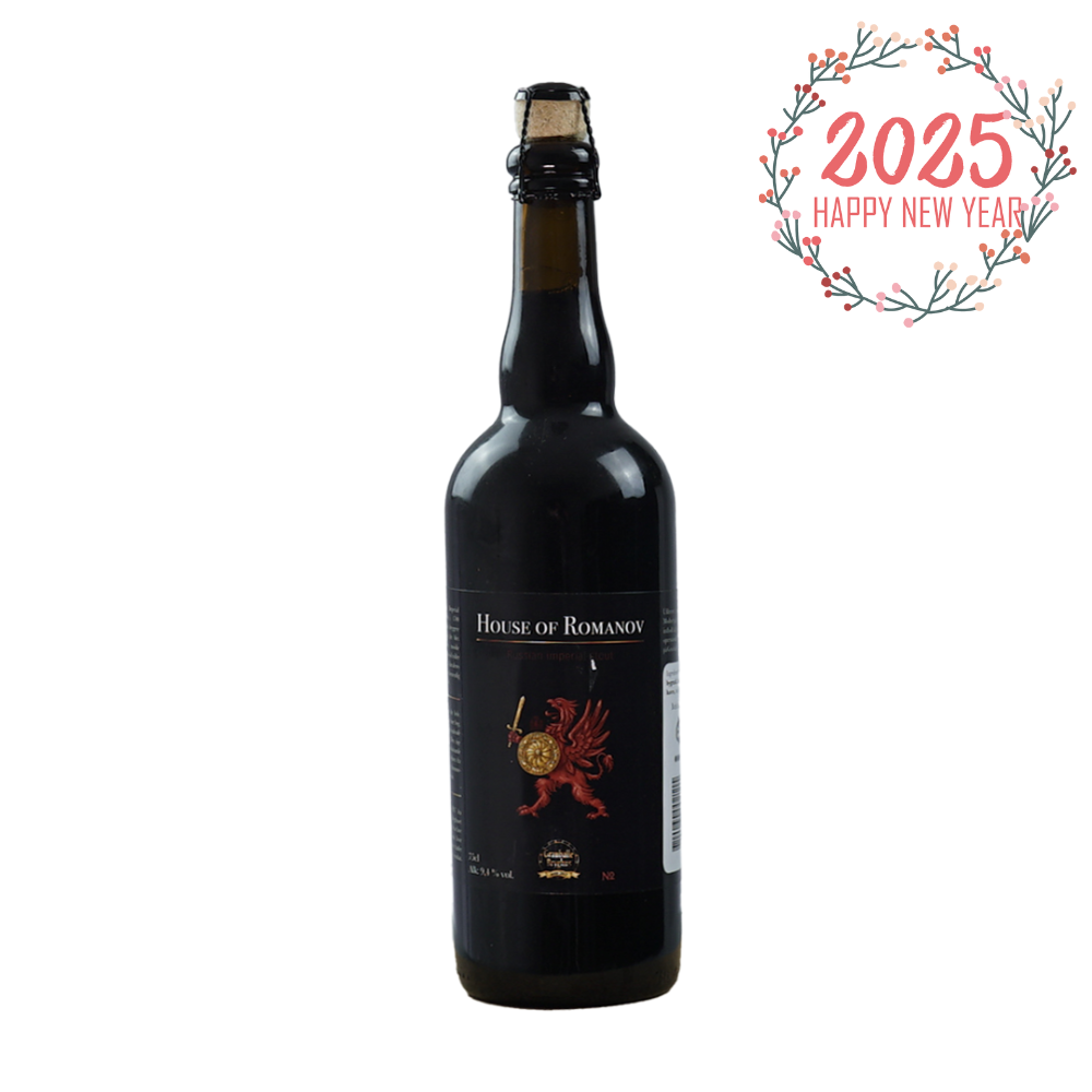 Når klokkerne slår tolv, skydes nytåret ind med House of Romanov – en eksklusiv romstout. En imperial stout, flaskemodnet med rom og tappet på champagneflaske. En værdig finale på året.